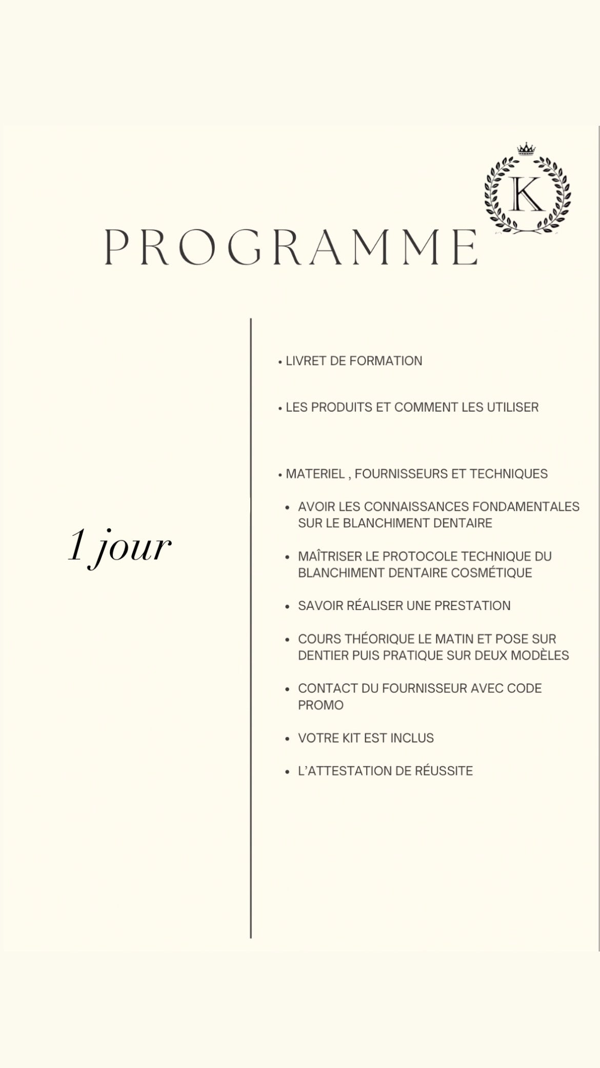 Programme de la formation blanchiment dentaire cosmétique :